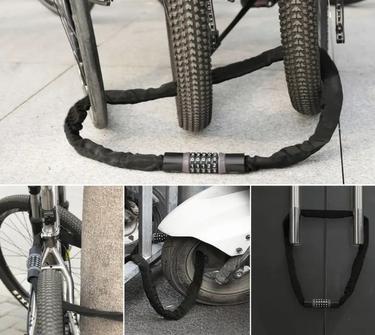 Anti-vol de haute résistance, sûr et pratique. Idéal pour la fixation sur les supports de vélos et les poteaux.