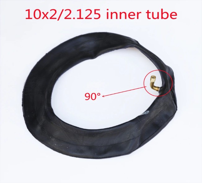 Chambre à air de remplacement pour scooter électrique 10 x 2/2.125 avec une valve coudée à 90 degrés.