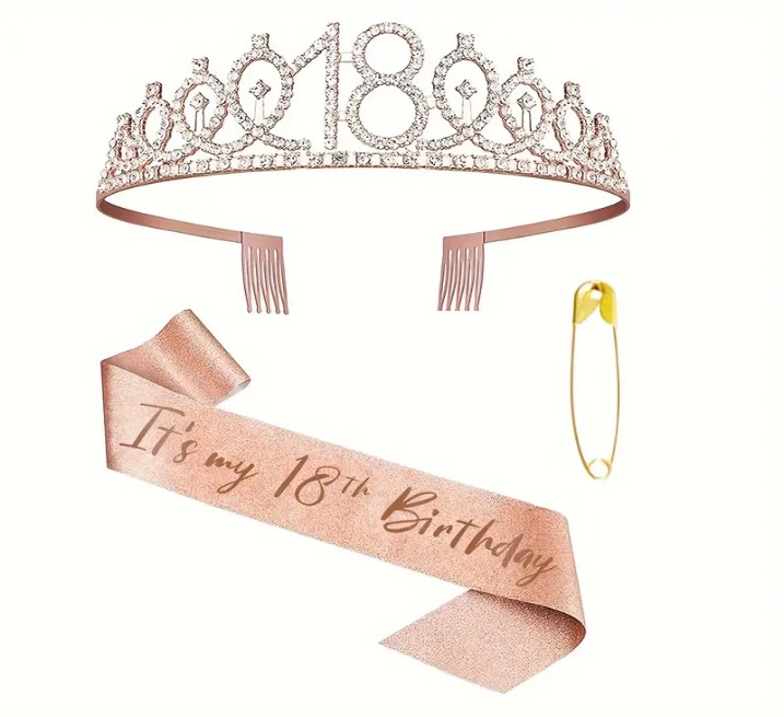 Tiare couronne rose dorée et écharpe – 18 ans